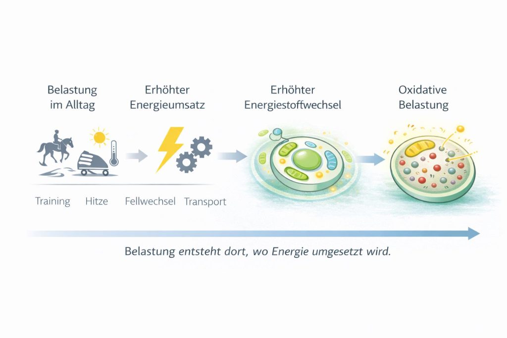 Oxidativer Stress ist daher kein Ausnahmezustand, sondern ein regelmäßig auftretender Bestandteil des Pferdealltags.